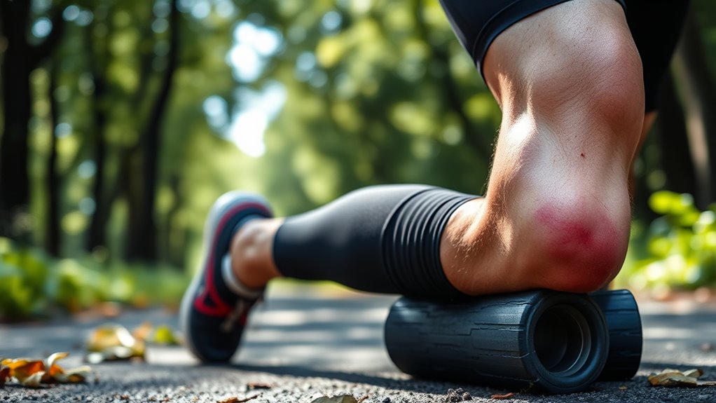 To prevent IT Band Syndrome, focus on gradual training progress and avoid overtraining, giving your knees time to recover. Strengthen your hips, glutes, and core muscles to reduce strain, and incorporate regular stretching and foam rolling to keep tissue flexible. Make sure your footwear is supportive and replaced as needed, and vary your activities to prevent repetitive stress. Keep an eye on early signs of pain to catch issues early—continue to explore for more helpful tips.