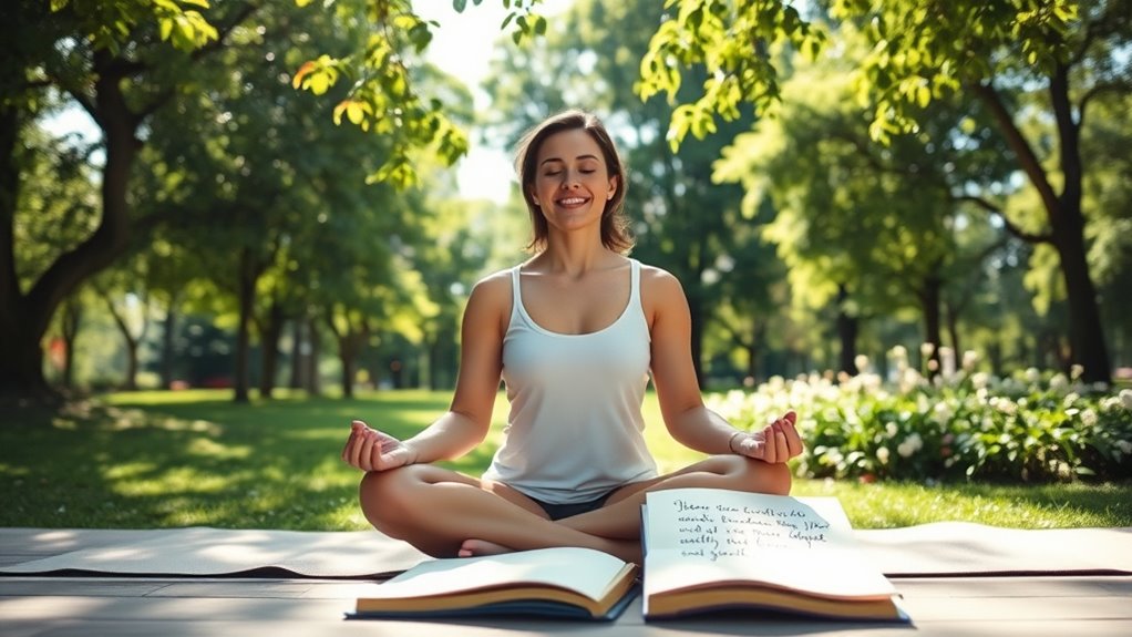 Maintaining motivation when practicing self-talk daily is like nurturing a delicate plant—you need consistent care and positive reinforcement. Use motivational strategies like setting small, achievable goals and celebrating progress. Habit formation helps make this routine automatic, keeping your mindset sharp. Remind yourself of your purpose regularly, and visualize the benefits. Staying connected to your “why” fuels your commitment, turning daily self-talk into a powerful habit.