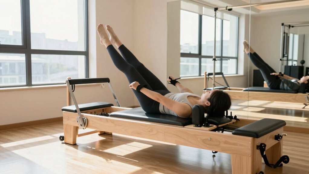 You’ll typically see stability improvements within 4 to 6 weeks of consistent Pilates Reformer training. Progress indicators include better balance, more controlled movements, and reduced fatigue during runs. Keep track of how your core feels, your posture, and your overall coordination. As long as you stay dedicated, you’ll notice these changes gradually, boosting your running performance and decreasing injury risk over time.