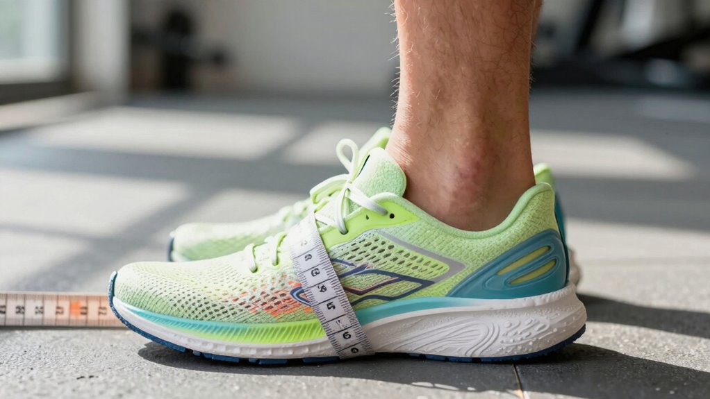Did you know that about 25% of runners use orthotics? When sizing shoes, account for orthotics compatibility by trying on shoes with your orthotics inserted. This guarantees proper fit and comfort. You might need shoe fitting adjustments, like going a half size up, to accommodate the orthotics without squeezing your foot. Always test the fit with your orthotics inside to prevent discomfort during long runs.