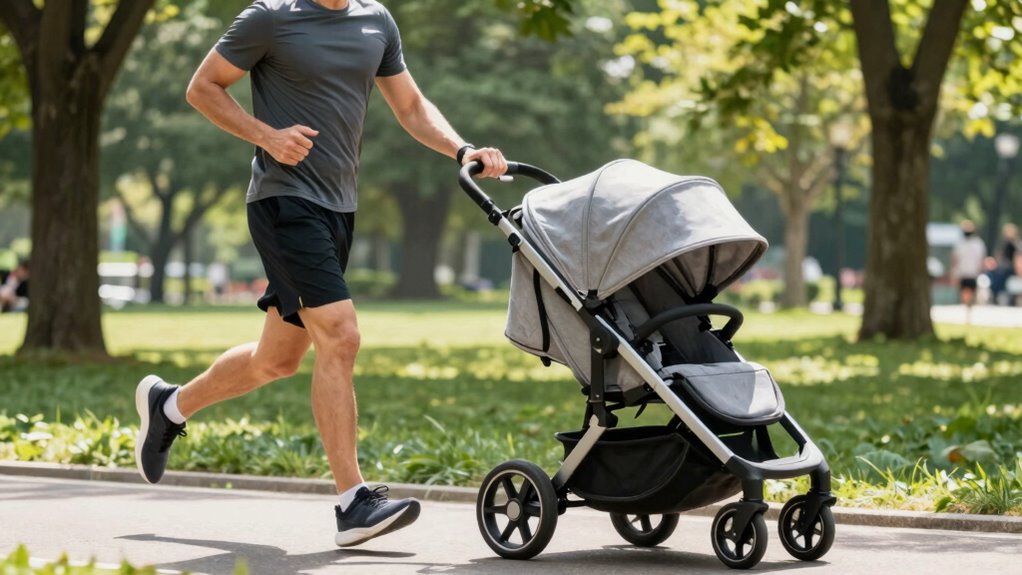 By focusing on your arm technique while jogging with a stroller, you can markedly reduce back strain and improve your overall running efficiency. Remember, engaging your arms properly can decrease your risk of injury and make your workout more enjoyable. Did you know that proper running form can cut your injury risk by up to 50%? So, pay attention to your arm movement—your back will thank you, and you’ll enjoy more comfortable, safer runs with your little one.