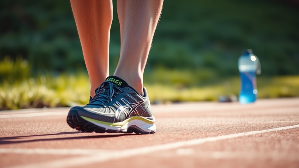 To prevent shin splints, wear supportive, well-fitting shoes that suit your gait and replace them regularly. Strengthen and stretch your lower leg muscles to improve shock absorption. Gradually increase your activity intensity to avoid sudden strain. Remember to warm up before workouts and include rest days to allow recovery. Paying attention to these basics will keep you injury-free, and if you continue, you’ll discover more effective ways to stay injury-proof.