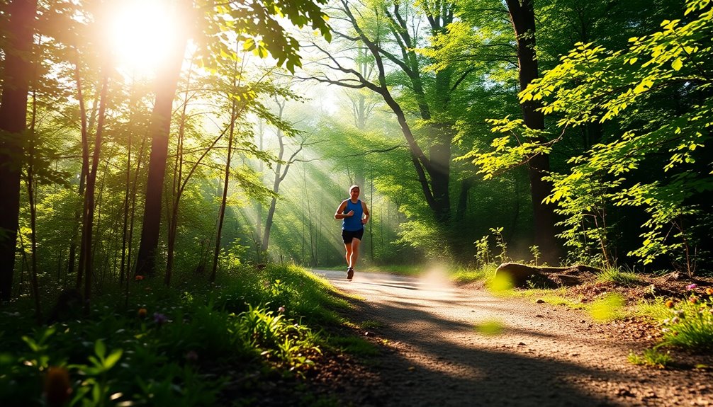 The natural environment enhances your experience, while the increased endorphin release lifts your spirits. Additionally, engaging in outdoor activities can help reduce tick-borne disease risks during your runs, especially in wooded areas.