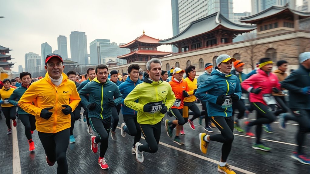 To excel at the Seoul Marathon, stay focused on pacing yourself, as the cold weather and fast course demand careful effort and mental clarity. Dress in layered clothing to manage the chill without overheating, and stick to your nutrition plan to maintain energy. Use the city’s vibrant atmosphere for motivation, but keep your mind centered on your race strategy. Want to discover how to combine preparation and mental focus to reach your goals? Continue on to find out more.
