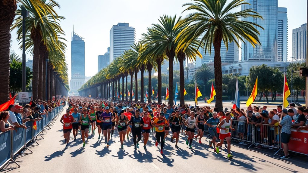 The Valencia Marathon offers a fast, flat course perfect for achieving a personal best. You’ll benefit from gentle elevation changes, strategic pacing, and ideal race-day planning, all designed to keep you moving efficiently. Practice your race pace and nutrition plans during training to stay steady. By focusing on these race strategies, you’ll maximize your performance on race day. Keep exploring to discover expert tips for a successful run in this record-breaking course.