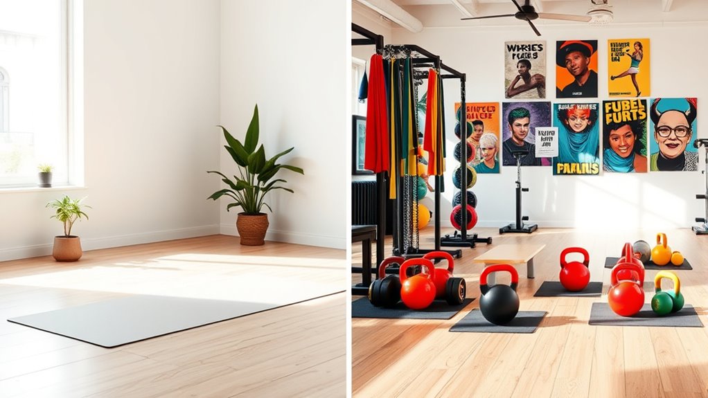 Think of your fitness goals as a compass—some aim for clarity, others for variety. If you seek focused progress with high training intensity and fewer sessions, minimalist routines suit you best. For those craving diverse challenges and high workout frequency, maximalist styles help push boundaries. Choose based on whether your goal values streamlined efficiency or broad exploration, aligning your approach with your desired journey and outcomes.