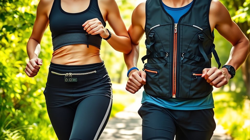 Ultimately, your choice hinges on how much you need to carry, your hydration preferences, and how you prioritize comfort. If you prefer simplicity and quick access, a running belt with hydration options might be best. If you need to carry more gear and want ample hydration capacity, a vest offers more versatility. Both options serve different purposes, so understanding your specific needs guarantees you select the gear that keeps you comfortable and well-fueled during every run.
