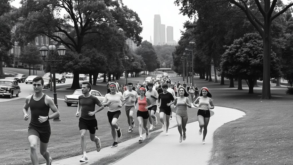 As you lace up and hit the pavement, you’re part of a movement that transformed fitness forever. Jogging swept through the 1960s like a wildfire, turning ordinary people into health-conscious explorers. Your simple stride now carries the legacy of pioneers who believed in the power of movement. Remember, your daily jog isn’t just exercise — it’s a revolution that changed the world’s approach to health, making it as unstoppable as a tidal wave.