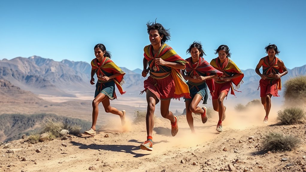 Running plays a essential role in your Tarahumara community life, serving as a key cultural activity that fosters community bonding and preserves traditions. It’s more than exercise; it’s a way to connect with ancestors and celebrate shared identity. Through communal runs and races, you strengthen social ties, pass down stories, and uphold cultural significance, ensuring that the spirit of running remains integral to your community’s unity and cultural vitality.