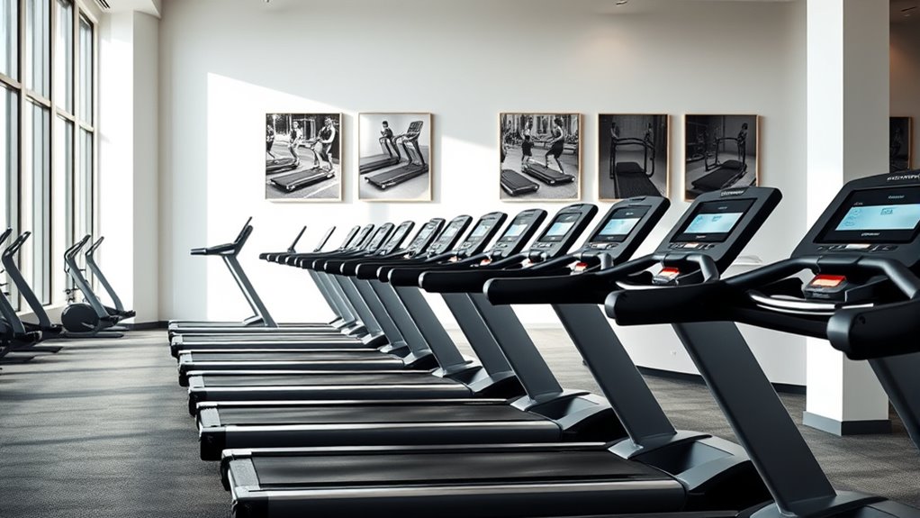 Treadmills have transformed from tools of punishment in gym class into versatile fitness machines designed for everyone. Today, they help you improve endurance, burn calories, and boost overall health with adjustable speeds, inclines, and pre-programmed workouts. Features like safety cushioning, interactive screens, and performance monitoring make workouts safer and more engaging. If you keep exploring, you’ll uncover how these advances turn treadmill use into an enjoyable and effective part of your fitness journey.