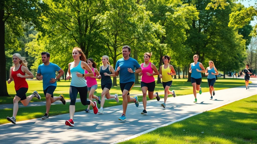 A dynamic warm-up before every run is essential because it prepares your muscles and joints, reduces injury risk, and boosts your performance. By incorporating active movements like leg swings, high knees, and butt kicks, you warm up muscles such as hamstrings, calves, and glutes. This enhances mobility, activates your nervous system, and helps maintain proper running form. Keep going to discover simple routines that will make your runs safer and more effective.