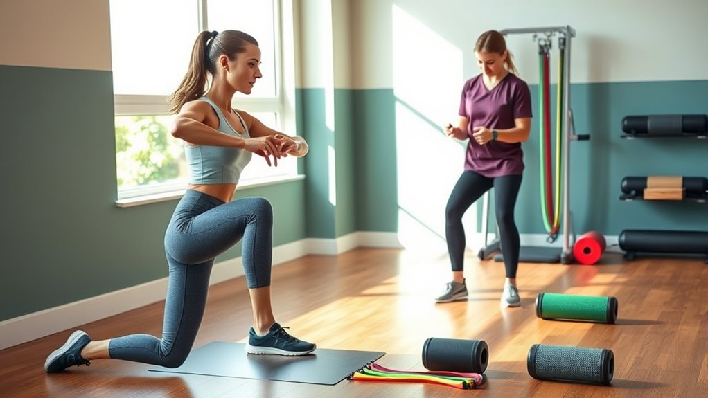 You mainly need minimal equipment for effective prehab, like a foam roller for myofascial release and a resistance band for stretching routines. These tools help improve flexibility and prevent injuries. Incorporate foam rolling into your warm-up or cool-down sessions, and use resistance bands for targeted stretching routines to strengthen muscles. With just these essentials, you’ll boost your running form, reduce niggles, and stay injury-free.