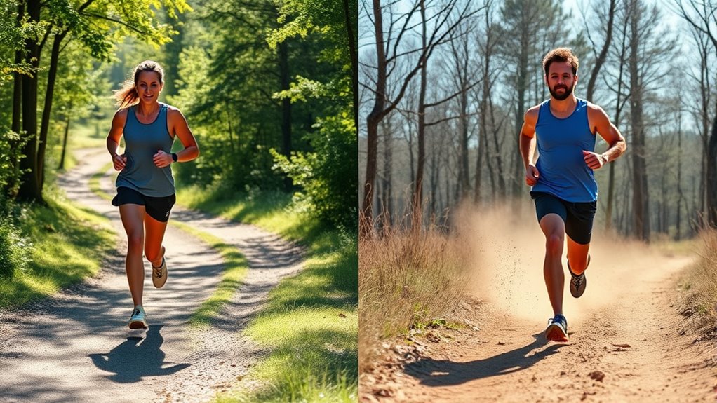 A recovery run is a very slow, gentle jog designed to help your muscles recover and reduce soreness after tough workouts, while an easy run is done at a comfortable pace to boost endurance and gradually increase mileage. Both are low-intensity and promote good biomechanics, but recovery runs focus on healing and minimizing stress, whereas easy runs build long-term fitness. If you want to understand how to incorporate both effectively, there’s more to uncover.