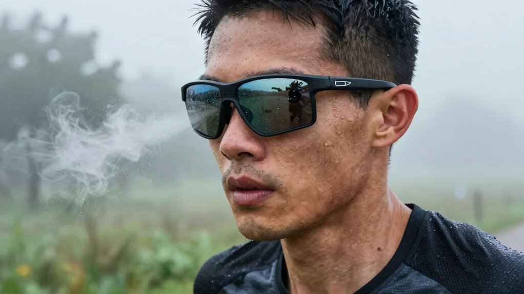 Next time your sunglasses fog mid-run, remember the venting trick—like clearing a window to see clearly again. It’s a simple step, but it can turn your run around, just as dawn breaks through night’s haze. Keep this in your kit, and don’t let foggy lenses hold you back. With a quick inhalation of fresh air, you’ll see your stride anew—focused, free, unstoppable, like the sun breaking through clouds after a storm.