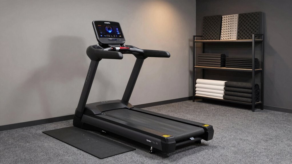 Furthermore, understanding the contrast ratio of your treadmill’s display can help you optimize your workout experience, as clearer visuals can motivate you to run more efficiently and quietly. By combining these strategies—using vibration control pads, a shock-absorbing mat, regular maintenance, proper placement, and mindful running—you can substantially lower the noise and vibration, making your apartment workouts quieter and neighbor-friendly.