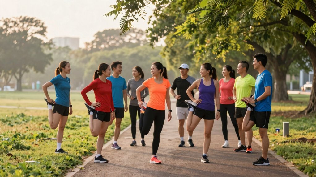 Bringing a friend along can be like adding a warm fire to your first group run—comforting but requires mindful running etiquette. It’s okay, just make sure your friend respects the pace and space of others. Use socializing tips to chat briefly before starting, then focus on the run. Remember, group runs thrive on shared energy, so balance your friendship’s comfort with the group’s rhythm for a smooth, enjoyable experience.