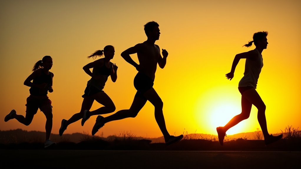 You modify your periodization models based on race distance by modulating training intensity and recovery strategies. For shorter races, you focus on higher intensity and speed work, with shorter recovery periods. For longer distances, you emphasize endurance and gradual intensity increases, incorporating more recovery to prevent burnout. Tailoring your plan guarantees peak performance across race types, helping you avoid overtraining and stay fresh for race day.