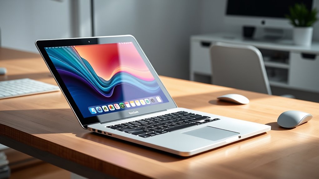 Memory and storage options substantially influence how well your 15-inch MacBook Air handles daily tasks and demanding applications. Upgrading to 24GB of RAM allows for smoother multitasking and improves performance with intensive software like video editing or graphic design tools. Storage capacities typically start at 256GB SSD, but you can expand to 512GB or more, giving you extra space for files, media, and projects. Keep in mind, increasing RAM and storage usually comes at a higher cost, so consider your specific needs before making upgrades. The unified memory architecture ensures quick data access and efficient performance across tasks. Investing in higher memory and storage can extend your MacBook’s relevance, especially if you rely on it for professional or creative work.