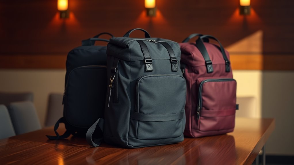 A well-made backpack with durable materials provides a strong foundation, but the theft-resistant features truly enhance security. Hidden zippers and lockable compartments make unauthorized access difficult, deterring pickpockets. RFID-blocking pockets add an extra layer of protection against electronic theft of sensitive information. Cut-resistant and slash-resistant fabrics increase durability and prevent thieves from slashing or tearing the bag open easily. Secure locking mechanisms, like TSA-approved locks or combination locks, help protect valuables during transit. Design elements such as secret pockets and anti-theft straps are essential for concealing valuables and reducing theft risks, especially in crowded environments. These features work together to keep your belongings safe, giving you peace of mind while traveling. Prioritizing theft-resistant design is vital when choosing a travel backpack.