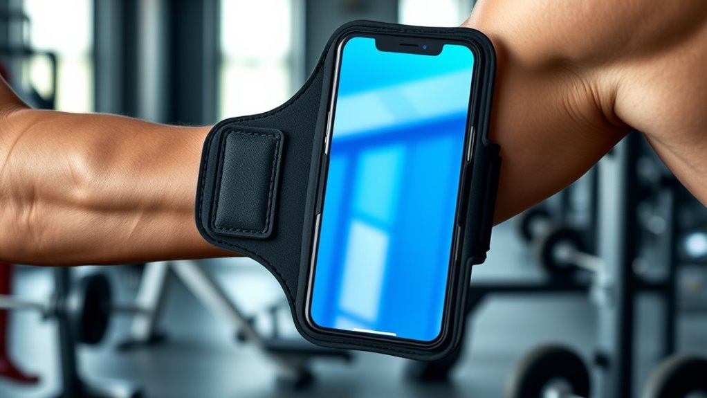 If you’re searching for the best armband phone holders for large devices that stay secure during your workouts, I’ve got you covered. I’ve found models made from durable, sweatproof fabrics with adjustable straps, ensuring a snug fit for bigger phones like iPhone Pro Max or Galaxy Plus. Many feature water resistance, multiple storage pockets, and reflective safety accents. Keep in mind the compatibility with your case and arm size. Explore to discover more options that keep your phone safe and accessible during active routines.
