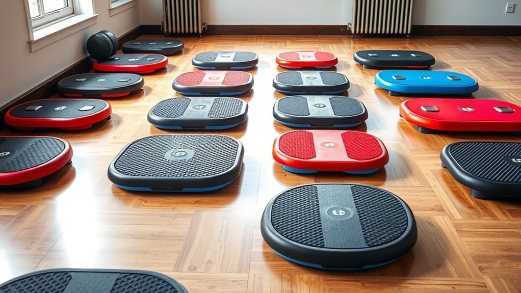 Choosing the right material for a balance board is essential because it directly affects durability, grip, and safety. Wood-based boards provide natural tactile feedback, are strong, and have a classic look, supporting weights up to 350 pounds. Plastic or composite boards, made from ABS or TPE, are lightweight, highly durable, and resistant to moisture and wear, making them ideal for various environments. Adding rubber or anti-slip coatings enhances grip, preventing slips during sweaty or dynamic exercises, and improves safety. The material also influences the board’s weight, portability, and suitability for indoor or outdoor use. Overall, selecting the right material guarantees your balance board remains effective, safe, and long-lasting as you work on proprioception and running performance.