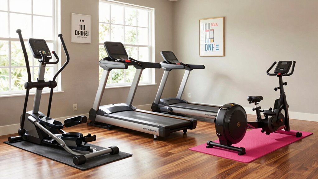 These compact cardio machines usually take up about 3 to 4 square feet for bikes and elliptical trainers, while foldable treadmills need around 6 to 8 square feet when in use. I find that measuring carefully and choosing models with foldable features helps maximize limited space. It’s also smart to think about machines with adjustable sizes or wheels for easy storage, making your small gym both functional and comfortable.