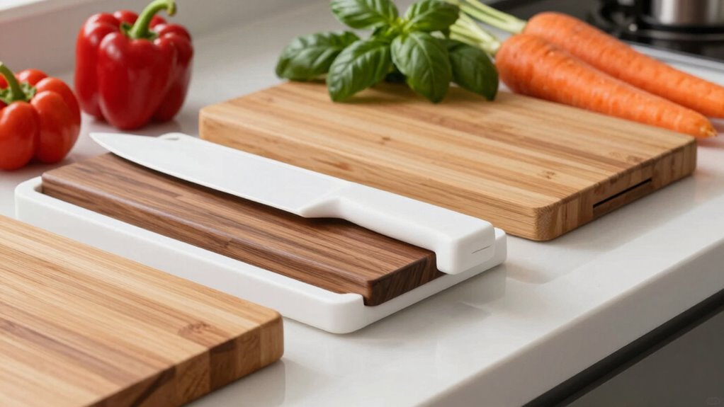 - Material options like bamboo, wheat straw, and titanium ensure knife-friendly surfaces and durability.