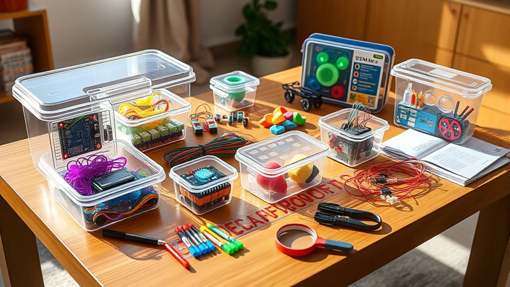 Choosing a STEM kit built with durable materials is essential for long-lasting use and safety. High-quality, non-toxic plastics, metals, or treated wood guarantee the components can withstand frequent handling and assembly. Kits with smooth edges and no sharp points help prevent cuts or injuries during play. Reusable parts, like snap-together pieces or sealed containers, extend the kit’s lifespan and provide better value. Waterproof or spill-resistant features on challenge cards or electronic modules help maintain functionality, even if accidents happen. Selecting sturdy, high-grade materials minimizes breakage and keeps the kit intact through multiple experiments and reconfigurations. Overall, durable materials not only protect kids but also maximize the investment, allowing for continued learning and exploration without frequent replacements.