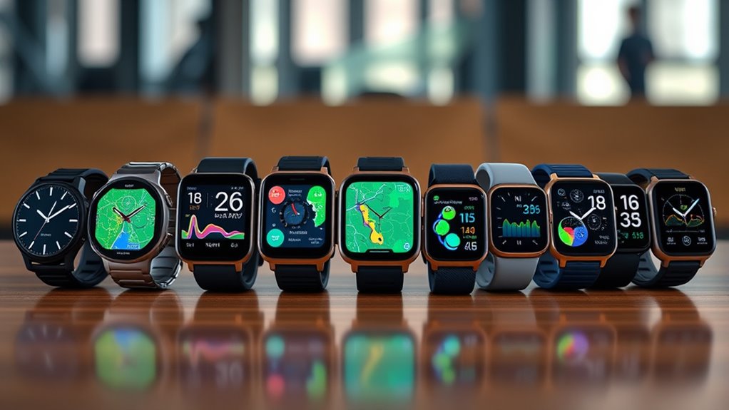 Looking for the best fitness tracker watches with GPS in 2025? I’ve found top models like Fitbit Inspire 3, Amazfit Bip 6, and Amazfit Active 2, which combine durable, lightweight designs with advanced health monitoring and outdoor navigation features. They offer long battery life, water resistance, and smart connectivity, perfect for outdoor activities and daily fitness. Keep exploring to discover all the features that can help you stay on track and reach your goals.