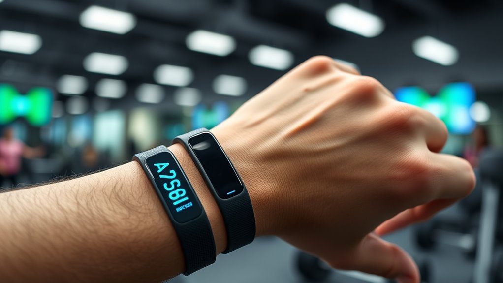 Accurate metrics are essential for tracking performance and making informed training decisions, so choosing a fitness tracker with reliable sensors and algorithms is crucial. High-quality sensors ensure that measurements like heart rate, blood oxygen, and blood pressure are precise, reducing discrepancies. Proper fit and snugness are vital; loose straps can lead to inaccurate readings, especially during sleep or heart rate monitoring. Multi-sport modes and automatic activity detection improve data reliability by correctly identifying exercise types and durations. Calibration features, particularly for blood pressure and oxygen saturation, help maintain accuracy over time. Additionally, regular software updates and validation studies ensure the device’s metrics stay precise and trustworthy. Prioritizing these factors guarantees that the tracker provides dependable data to optimize athletic performance.