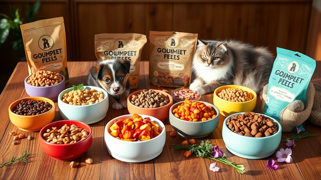 When it comes to pampering your furry friends, I’ve found some incredible gourmet pet food brands that truly stand out. Rachael Ray Nutrish, Portland Pet Food Company, and I AND LOVE AND YOU offer unique recipes that’ll make mealtime special. These brands focus on high-quality ingredients and delicious flavors. Plus, they provide various pack options to suit your pet’s needs. So, if you want to discover more mouthwatering options, keep exploring this guide!