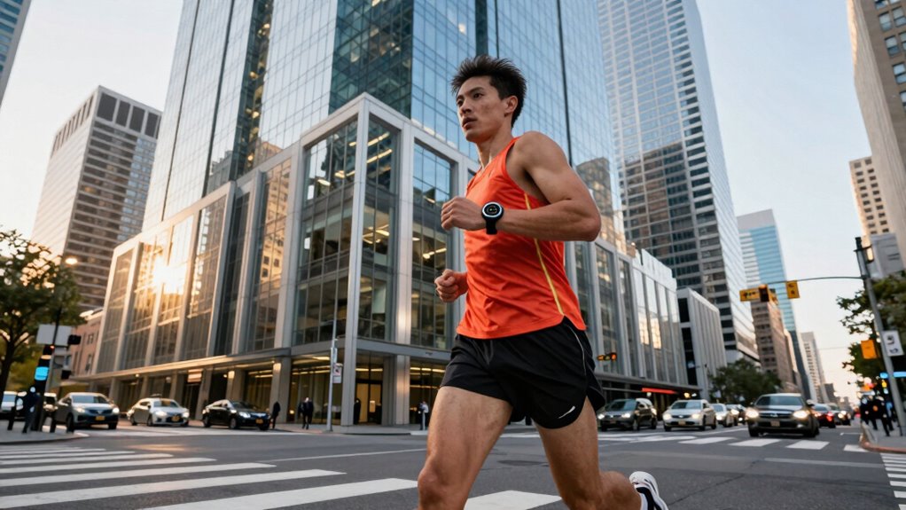 Did you know that 65% of runners face GPS inaccuracies in urban environments? When choosing a city running GPS watch, I look for features like multi-GNSS support, which improves signal reliability amidst tall buildings. A barometric altimeter is also essential for accurate elevation data. Additionally, I prioritize watches with quick signal reacquisition and built-in mapping, ensuring I stay on track even in complex city landscapes.