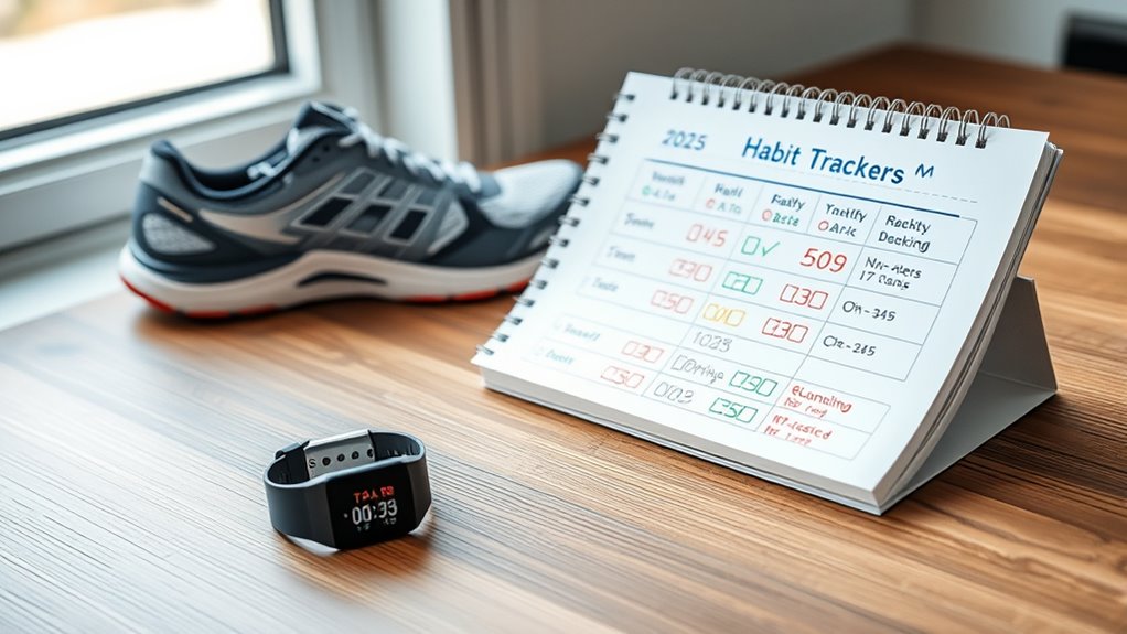 If you’re looking to boost your running performance in 2025, these 12 habit trackers can help you stay focused and motivated. From undated planners with flexible layouts to durable whiteboards and portable notepads, there’s something for everyone’s style and needs. Many feature inspiring designs, helpful tracking tools, and sturdy materials to keep you on track. Keep going, and you’ll discover which options align best with your goals and fueling your progress.