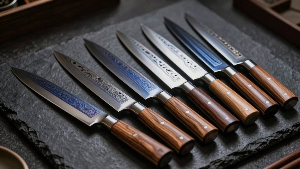 If you’re looking for the 15 best handmade Japanese knives for 2026 that chefs love, I’ve got you covered. From premium models like the Shun Premier 8” to artistic knives such as the Japanese Tanto with Phoenix Sheath, I’ve included options for every skill level and style. These knives combine traditional craftsmanship, high-quality steels, and ergonomic designs for performance and durability. Keep going to discover detailed insights about these exceptional blades.
