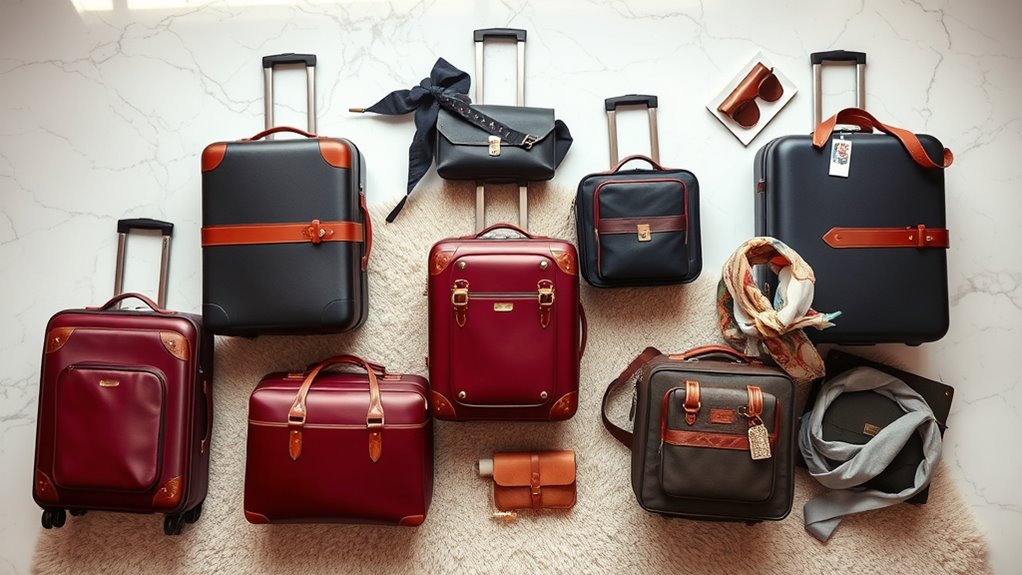 If you’re looking to travel in style, investing in high-end luggage sets is a must for 2025. I’ve found excellent options like the American Tourister Westridge and the Joyway 7 Piece Set, featuring durable materials, TSA locks, and expandable designs for maximum convenience. These sets not only elevate your travel experience but also guarantee your belongings stay organized and secure. Stick around to uncover more luxurious choices that will take your travels to the next level!