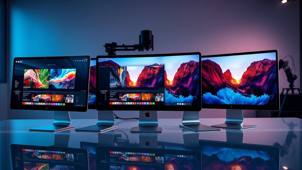 Choosing the right iMac for video editing is like planting a sturdy tree—you want strong roots, vibrant leaves, and a resilient trunk. With the right specs, your editing workflow will flourish, producing beautiful results just like a thriving tree in full bloom. So, pick wisely, and watch your creative ideas grow tall and proud in 2025. After all, your perfect iMac is the foundation for your creative forest.
