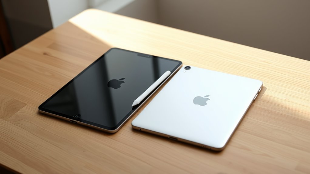 As a student, I find the iPad Air offers great value with its powerful M3 chip, lightweight design, and solid display, perfect for everyday tasks and creative projects. The iPad Pro boosts performance with a larger screen and higher specs, ideal for intensive work or professional use. Both support Apple Pencil and keyboard accessories. Want to see how they compare in detail? Keep exploring, and you’ll get all the insights you need.