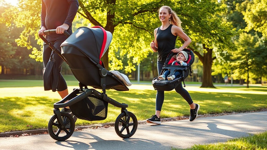 Choosing the right jogging stroller balances performance with comfort, much like a well-choreographed dance between speed and stability. Whether you prioritize rugged all-terrain capabilities or sleek, lightweight design, each option offers its own unique rhythm. Remember, the perfect stroller isn’t just about hitting the pavement; it’s about finding harmony between your running goals and your little one’s safety. Ultimately, it’s this delicate balance that transforms every run into a joyful shared experience.