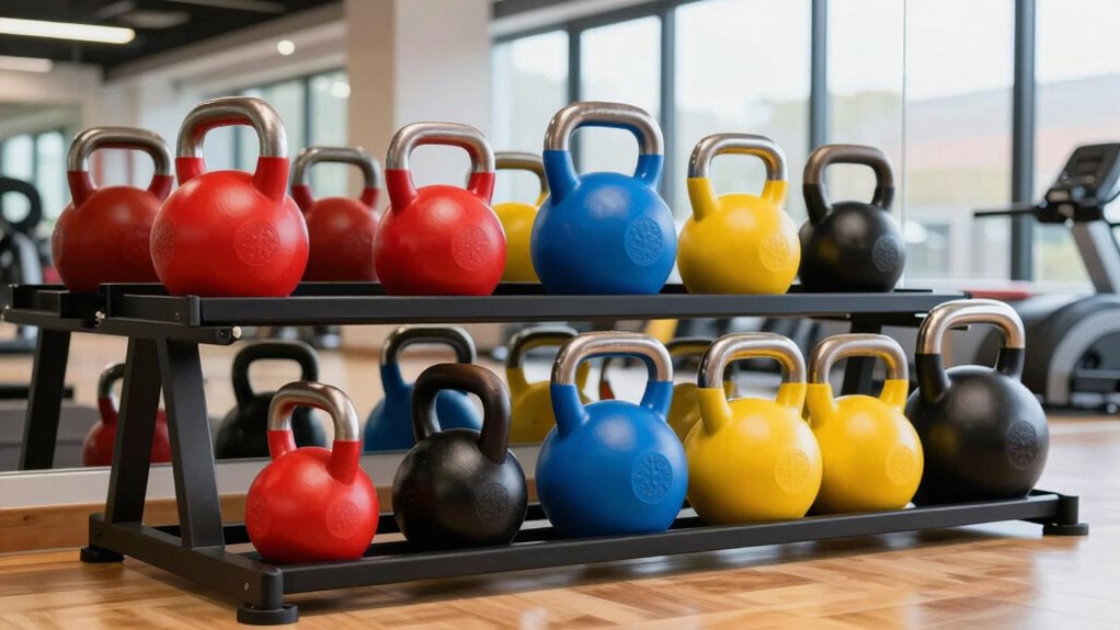 - Color-coded kettlebells and textured handles enhance safety, quick identification, and comfortable grip during versatile workouts.