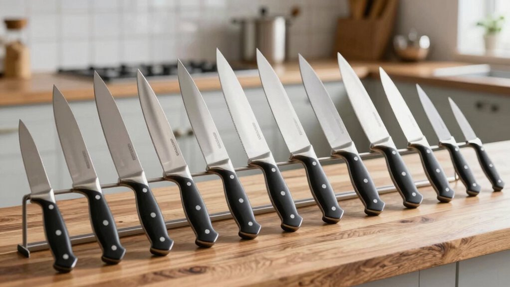 Stainless steel knives generally offer better durability and corrosion resistance, making them low-maintenance and reliable for everyday use. Carbon steel knives, on the other hand, excel in sharpness and edge retention, giving you precise cuts. I find stainless steel easier to care for, but if you want a super sharp edge and don’t mind extra upkeep, carbon steel is a fantastic choice. It really depends on your cooking style and maintenance willingness.