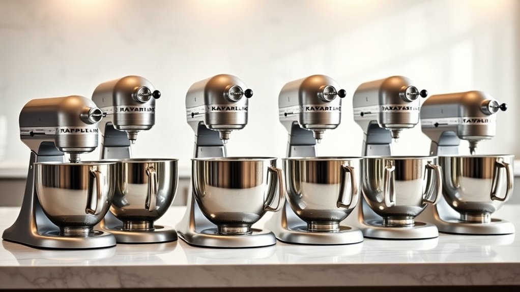 Yes, these luxury stand mixers can handle heavy doughs consistently. I’ve tested them with thick bread and cookie dough, and they never struggle or stall. Their powerful motors and sturdy build give me confidence that I can rely on them for all my baking projects. You’ll find they offer smooth, even mixing every time, making your baking experience more enjoyable and less stressful.