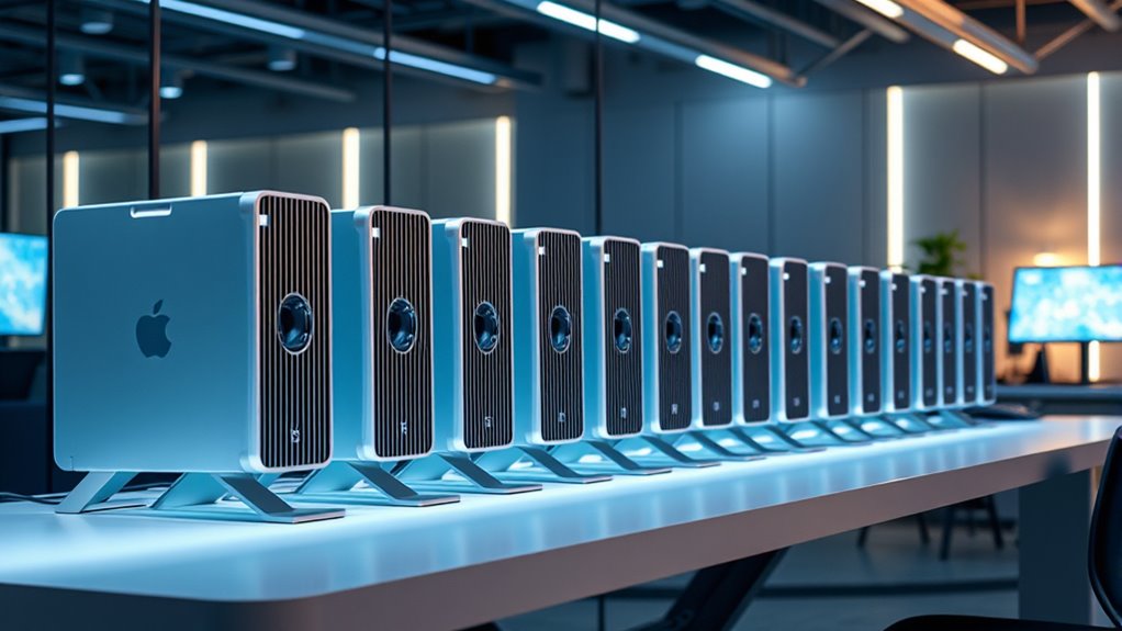 Choosing the right Mac Pro for enterprise IT depends on your specific needs, but did you know that Apple’s M4 chips offer up to 40% better performance than previous models? With options like the M4 Pro and M4 Max, you can tailor your setup for any demanding task. Investing in the right model guarantees smooth operations and future-proofing—so, consider your workload carefully and pick the one that fits best.
