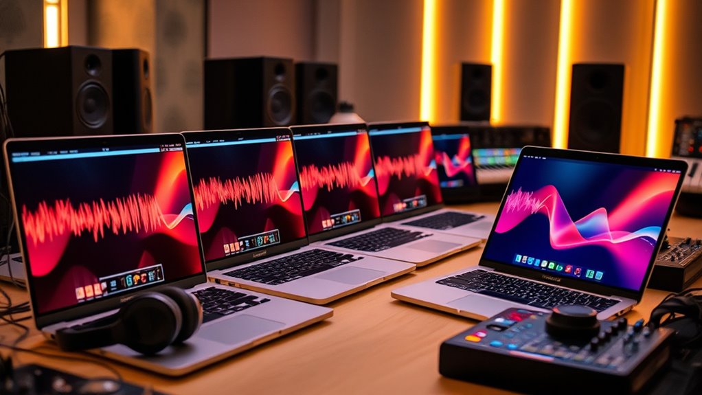 If you’re serious about music production, choosing the right MacBook Pro can make all the difference. Did you know that 70% of professional musicians prefer MacBooks for their reliability and power? With models like the M4 Max and M4 Pro offering incredible performance, you’ll be well-equipped to handle complex projects without a hitch. Invest wisely, and your creative flow will stay smooth and inspiring every step of the way.
