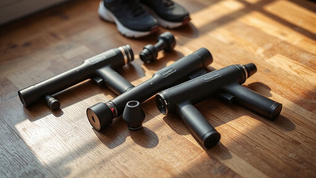 Choosing the right massage gun can truly enhance your recovery and performance as a runner. Did you know that a study found athletes who use targeted massage techniques recover 30% faster? By selecting a high-powered, versatile model, you’re investing in your best runs yet. Remember, the right device not only soothes sore muscles but also boosts circulation and reduces injury risk. Stay consistent, and your running journey will feel smoother and more rewarding.