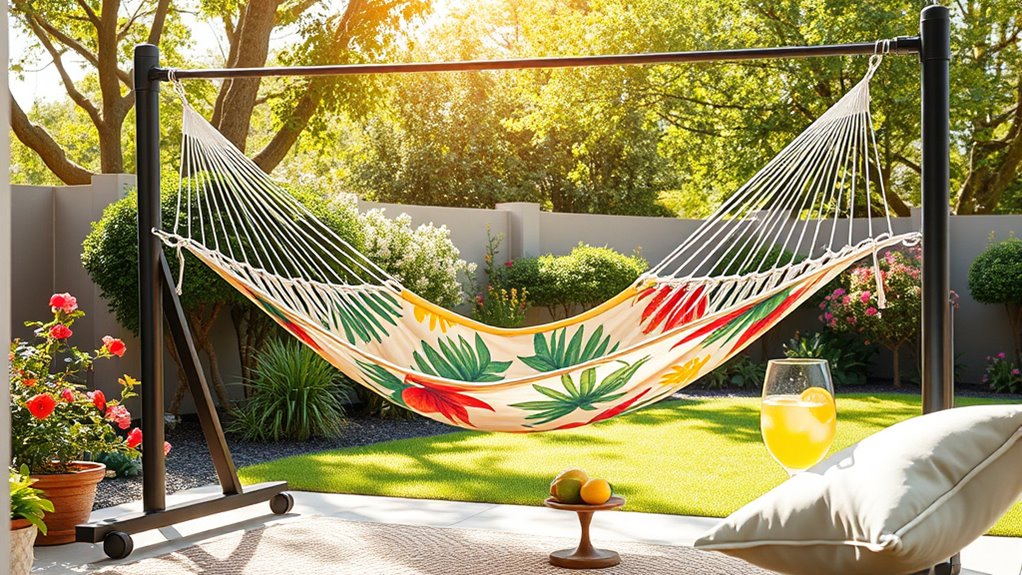 Ultimately, selecting the perfect outdoor hammock with stand promises peaceful relaxation and personalized pleasure. By balancing budget-friendly basics with bold, beautiful designs, I can find my ideal oasis. From sturdy stands to stylish swings, this journey transforms my backyard into a blissful retreat. So, seize the selection, savor the serenity, and set up your sanctuary—because the best outdoor hammock experience begins with a smart, satisfying choice.