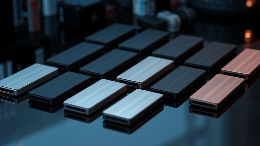 When you’re frequently on the go or working in rugged environments, durability and shock resistance become critical factors in selecting a portable SSD. A shock-resistant drive can withstand drops from at least 6 feet, minimizing the risk of data loss if accidentally dropped. Many durable drives feature rugged exteriors made of aluminum or zinc alloy, which resist impacts and environmental damage. Internal shock sensors or suspension systems protect sensitive components from jolts and vibrations, ensuring reliable performance even during sudden movements. Water and dust resistance ratings, like IP65, add another layer of protection, making these drives suitable for outdoor shoots, travel, or construction sites. Overall, high durability and shock resistance ensure your data stays safe, and your drive remains reliable over time in demanding conditions.