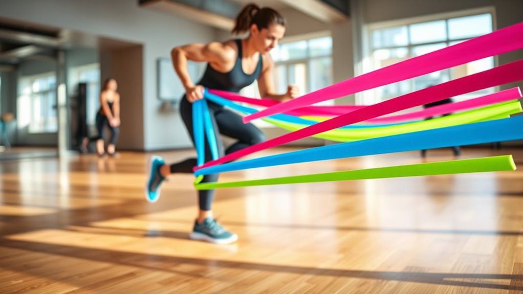 If you’re looking to boost your hip strength and improve running performance, I recommend trying resistance bands designed for hip activation. Options like fabric booty bands, short latex loops, and the Mark Bell Sling Shot Hip Circle are great choices. They help with glute engagement, stability, and injury prevention. Curious about the best picks for your routine? Keep going to discover top-rated bands that can help you run stronger and safer.