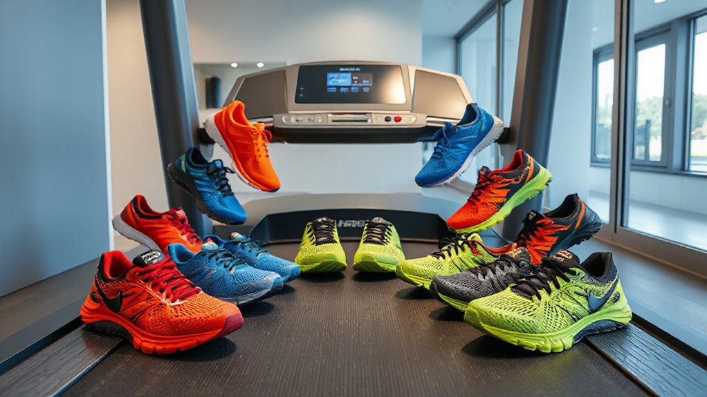 Yes, there are specific shoes for treadmill running on flat versus inclined surfaces. I find that shoes with a flatter sole work better on level surfaces, providing stability and a natural stride. For inclined running, I prefer shoes with slight heel cushioning to support my ankle and absorb extra impact. Choosing the right shoes depends on your treadmill’s incline settings and your natural gait, ensuring comfort and injury prevention.