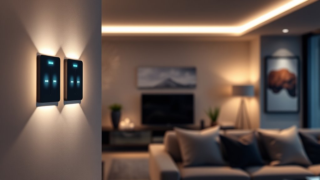 Automation and scheduling features transform a basic smart switch into an intelligent lighting system that adapts to your lifestyle. They let you set specific times for lights to turn on or off, boosting convenience and saving energy. Many switches support routines and scenes that automate multiple devices based on time, occupancy, or other triggers, making your home more responsive. Scheduling options include sunrise/sunset timers, countdowns, and randomization to simulate occupancy when you’re away. Advanced automation can integrate with sensors, geofencing, or external systems to trigger lighting changes based on motion or your location. However, reliable automation depends on accurate timekeeping, stable Wi-Fi or hub connectivity, and well-configured rules to ensure everything works seamlessly as intended.