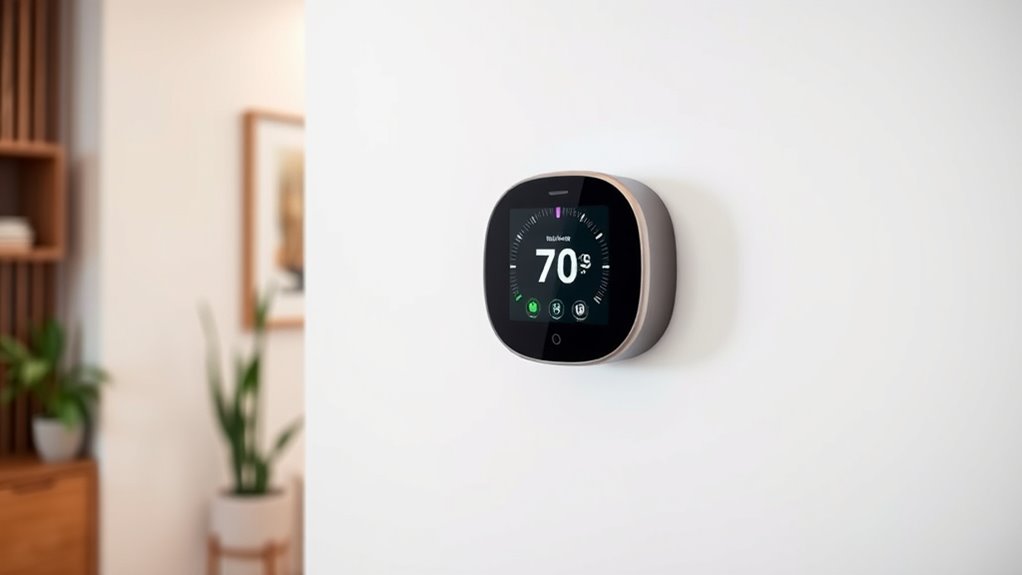 Did you know smart thermostats can cut heating costs by up to 12%? I’ve seen how they boost efficiency by learning your schedule and adjusting the heat accordingly. They use sensors and Wi-Fi connectivity to optimize heating, avoiding unnecessary energy use. This means you stay comfy while saving money. I recommend installing one to get the most out of your heat-only system and enjoy smarter, more efficient heating.